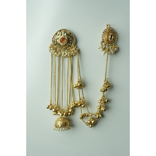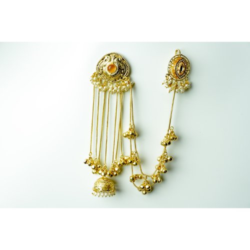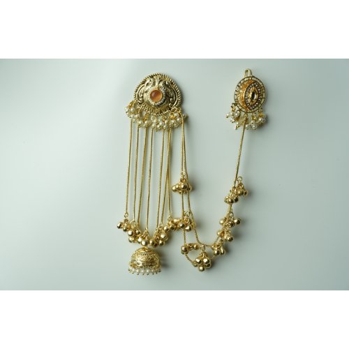 Amber Bahubali Kashmiri Earrings with Ear Chain