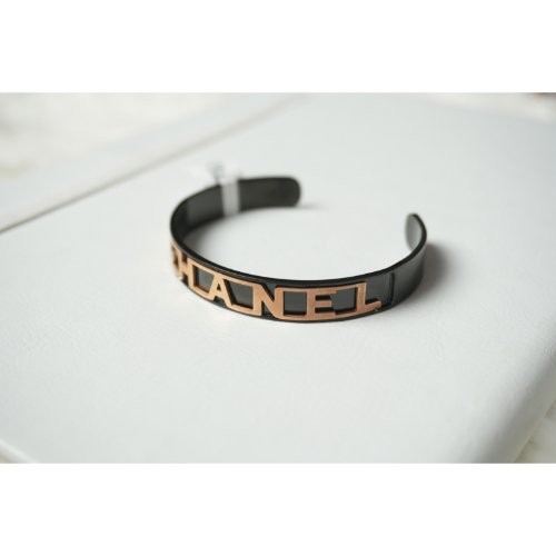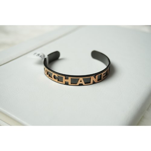 Black and Gold Channel Logo Cuff Bracelet