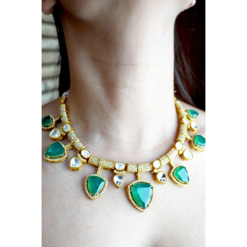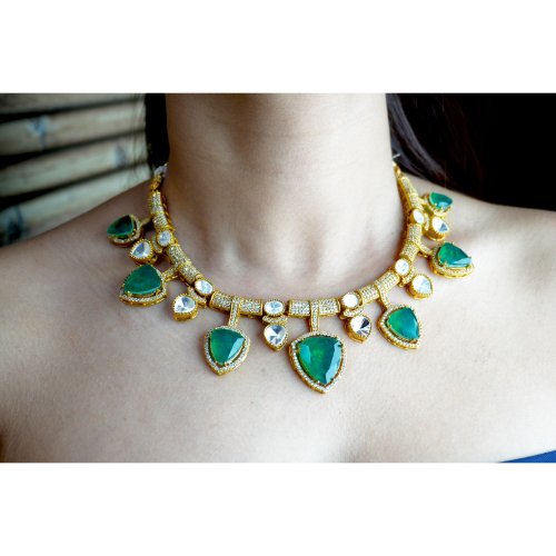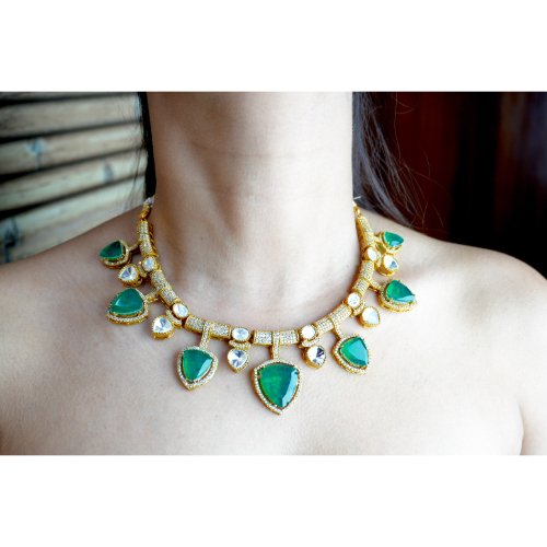 Emerald Polki Victorian Necklace Set